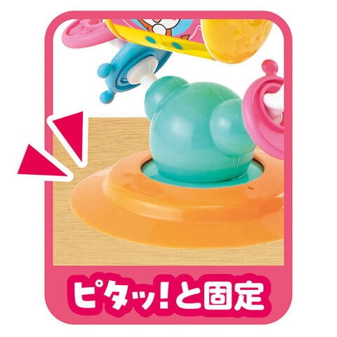 ●吸盤がおもちゃをテーブルにピタッ!と固定してくれるので、集中して遊べます。