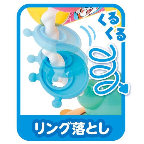 ● かわいいリングが4つ、らせん状のアームをくるくるまわりながら降りてきます。