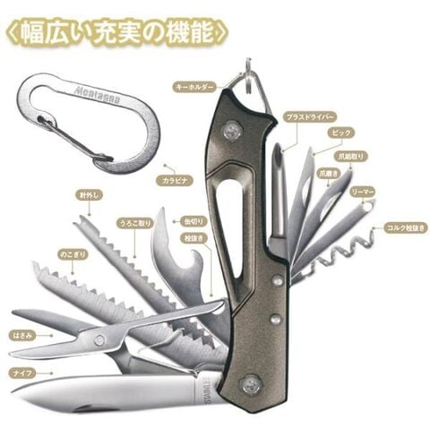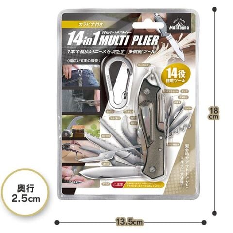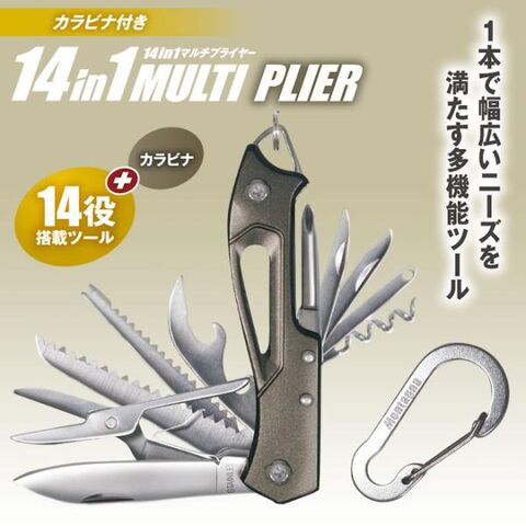 携帯工具 多機能 携帯ツール 14in1 マルチプライヤー カラビナ付き 災害 防災グッズ 非常用 アウトドア キャンプ バーベキュー 登山 釣り ナイフ はさみ のこぎり うろこ取り 栓抜き プラスドライバー 送料無料