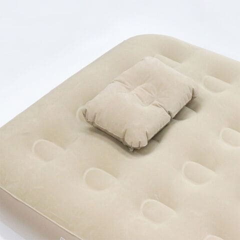 エアーベッド、バッテリー内蔵エアーポンプ、エアーマクラ、収納袋、修理キット(表面用パッチ×1、側面・底面用パッチ×1)、USBケーブル(Type-AtoC)、ノズル(浮き輪用×1・エアーソファー用×1・エアープール用×1)、取扱説明書