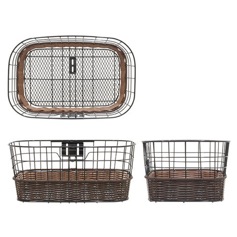 自転車 かご バスケット 籐かご風 丸型 ワイヤーバスケット 前用 TB-29 PALMY ワイド 大きい 大型 通学カバン スクールバッグ ビジネスバッグ シティサイクル ママチャリ 電動アシスト自転車 まえ用 前カゴ フロント ビッグ 通勤 通学 学校