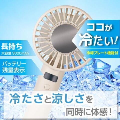 ハンディファン 冷却プレート 瞬間冷却 強力送風 扇風機 小型 3段階風量 液晶 バッテリー残量 卓上 ハンディ扇風機 手持ち扇風機 ストラップ スタンド 軽量 ミニ扇風機 携帯扇風機 ペルチェ素子 送料無料