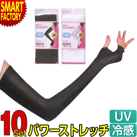 アームカバー レディース UVカット 《お得な10枚セット》 おたふく手袋 JW-617 接触冷感 吸汗速乾 ロング ストレッチ 引きしめ ずれにくい フリーサイズ