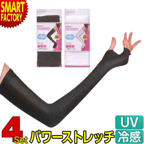 アームカバー レディース UVカット 《お得な4枚セット》 おたふく手袋 JW-617 接触冷感 吸汗速乾 ロング ストレッチ 引きしめ ずれにくい フリーサイズ