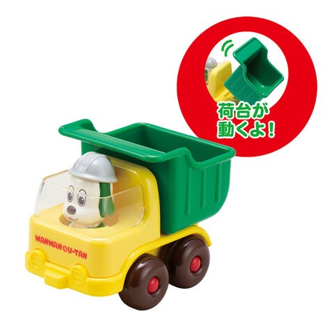 働く車の中でもいつも上位人気のダンプカーに、安全帽を被った「ワンワン」!