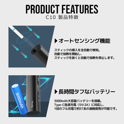 3000mAhの大容量バッテリーを搭載しており、1度の充電で最大約37本連続使用を実現!