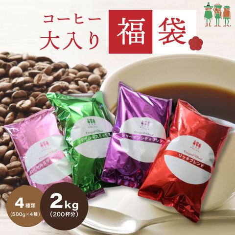 大入り コーヒー福袋 粉 500g 4種類 2kg入り 200杯分 飲み比べセット 送料無料 大容量