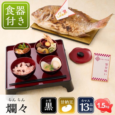 お食い初め膳爛々(らんらん)食器セット付(女の子用)●鯛1.5kg●甘納豆赤飯