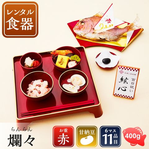 お食い初め膳爛々(らんらん)レンタル食器セット付(男の子用)●甘納豆赤飯