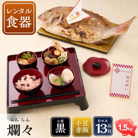 【リニューアル】お食い初め セット【お食い初め膳 -爛々-(レンタル食器セット)《鯛1.5kg》】 食器不要・盛付済のお食い初めセット 国産最高級ブランド真鯛 歯固め石 送料無料