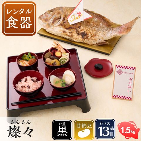 お食い初め膳燦々(さんさん)レンタル食器セット付(女の子用)●甘納豆赤飯