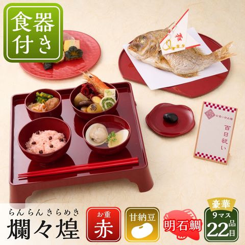 お食い初め膳爛々 煌(らんらん きらめき)食器セット付(男の子用)●明石鯛 ●甘納豆赤飯