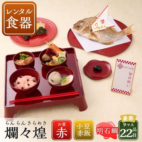 【リニューアル】お食い初め 100日祝い 【お食い初め膳 爛々煌(レンタル食器セット)《明石鯛》】国産天然鯛 赤飯 お吸い物 歯固めの石 <豪華お料理17品> お食い初めセット やり方 メニュー ギフト パーティー 宅配 出産祝い