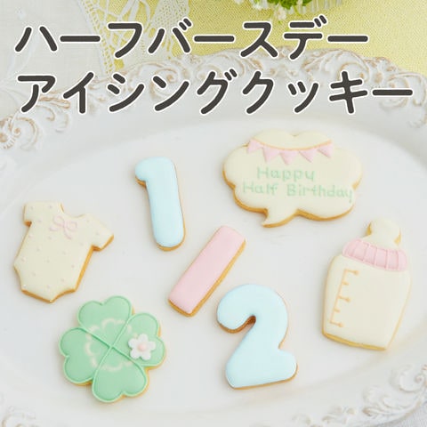 | 内容量 | ●アイシングクッキー7枚(ふきだしプレート×1、"1"×1、"―"×1、"2"×1、哺乳瓶×1、ロンパース×1、四つ葉のクローバー×1) |