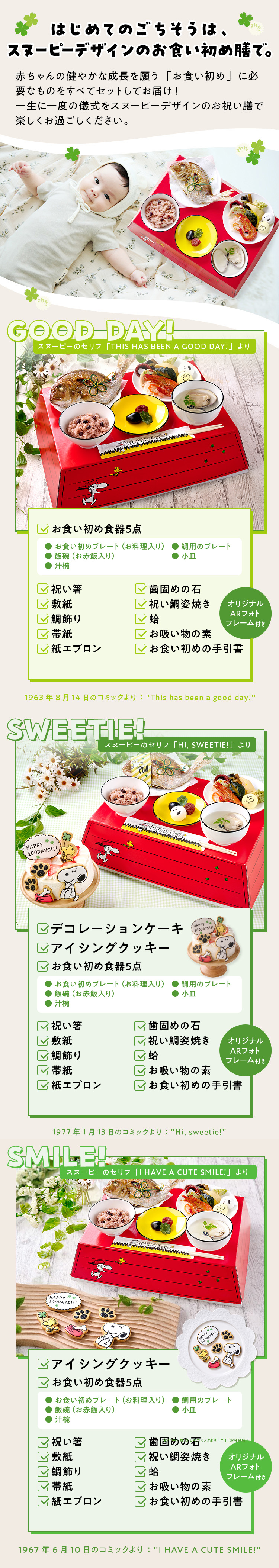 お食い初め セット 料理 【スヌーピー お食い初め】 SMILE! クッキー 歯固めの石 ARフォトフレーム