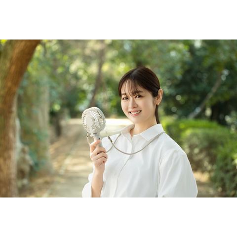 夏に大活躍するハンディファンの大風量モデル。大風量なのに静音なので、使う場所を気にせず使えます。付属のストラップもおしゃれな丸紐で、肩掛けできる長さがあります。スマホが立て替えられるスタンド付き。全面ガードも外れるのでお手入れも簡単です。\n