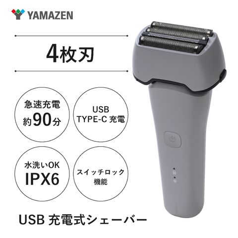 長いひげも剃れる「ダブルエッジトリマー」搭載のType-C充電のシェーバー●電源方式:充電式(リチウムイオン電池) ●長いひげも剃れる「ダブルエッジトリマー」搭載 ●毛くず処理が簡単な水洗いタイプ(IPX6) ●スイッチ長押し3秒で電源ロック ●充電式で使用可能。(約90分充電で約60分使用可能) ●メーカー保証:1年 ●電源方式:充電式(リチウムイオン電池) ●長いひげも剃れる「ダブルエッジトリマー」搭載 ●毛くず処理が簡単な水洗いタイプ(IPX6) ●スイッチ長押し3秒で電源ロック ●充電式で使用可能。(約90分充電で約60分使用可能) ●メーカー保証:1年