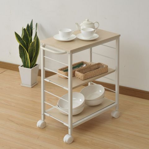 YAMAZEN 棚が動かせるキッチンワゴン ベージュ/ホワイト