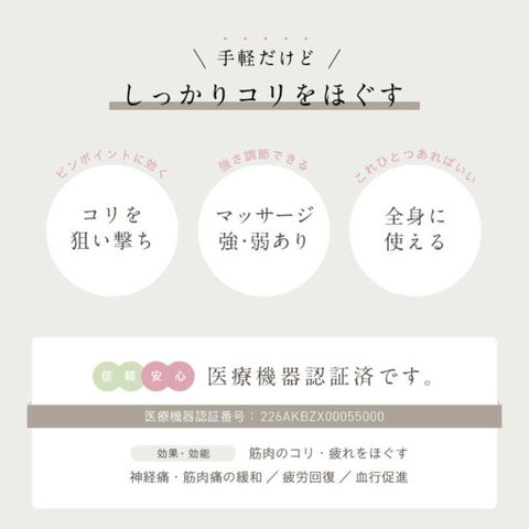 乾電池式のコードレスのため、いつでもどこでも持ち運んでコリをほぐせます。