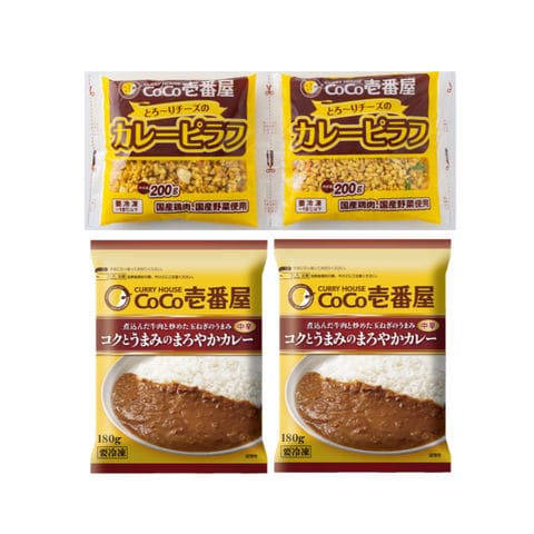 1978年に創業し、今や国内外の総店舗数は1,400店舗を超える国内最大のカレー専門店チェーン、カレーハウスCoCo壱番屋が監修したココイチオリジナルのマイルドな中辛冷凍カレーと、人気No.1のトッピング「チーズ」をふんだんに使用したオリジナルカレーピラフのセットです。