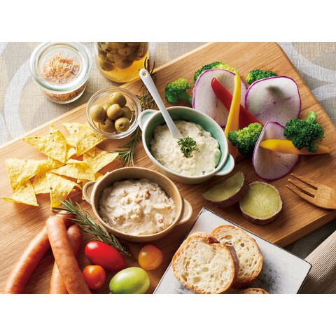 秋田名産のいぶりがっこを細かく刻み、クリームチーズなどを合わせたディップソースです。クリームチーズマヨとブラックペッパーを加えたベーコンマヨの2種セットでお届けします。野菜やフライ、バゲットなどに添えてお召し上がりください。\n