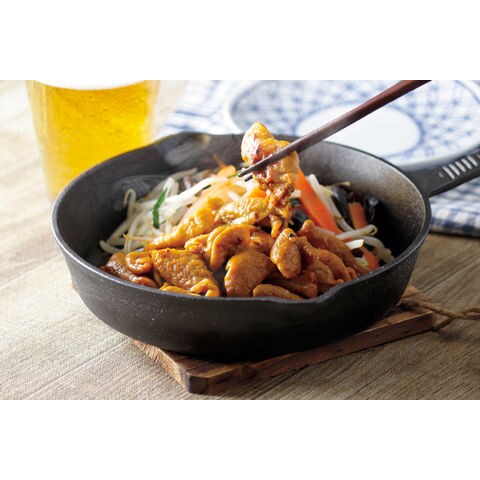 国産豚の白モツを丁寧に下処理し、にんにく味噌だれで味付けした肉屋自慢のホルモンです。そのまま焼いてお酒の肴に、野菜と炒めておかずにもなる便利な一品です。\n
