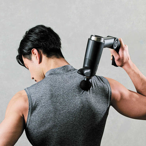 約12mmのストロークで力強い振動を実現したガン型ボディケアツール。5種類のアタッチメントでケアしたい筋肉にピンポイントアプローチできる。
