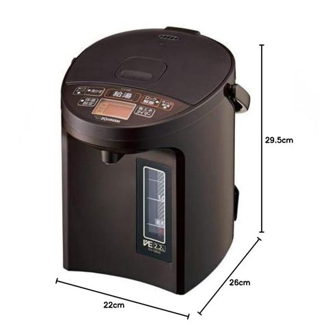 タイプ:電気ポット 容量*1:2.2 L 出湯方式:電動式 温度設定:5段階(98℃/90℃/80℃/70℃/まほうびん) 沸騰時間*4:満水:約19分(室温23℃・水温23℃の場合) 保温機能:5段階(98℃/90℃/80℃/70℃/まほうびん) 電源コード:1 m 湯沸し時消費電力:905 W 消費電力:905W電動ポンプ(電動機):約1.8W 目盛付き窓:○ 蒸気セーブ:○ 転倒湯漏れ防止:○ 空焚き防止:○ カルキ抜き機能:○ 再沸騰機能:○ 節電タイマー:5段階節約タイマー(6・7・8・9・10時間) 蓋の取り外し:○ サイズ:220x260x295 mm 重さ:2.7 kg カラー:ブラウン