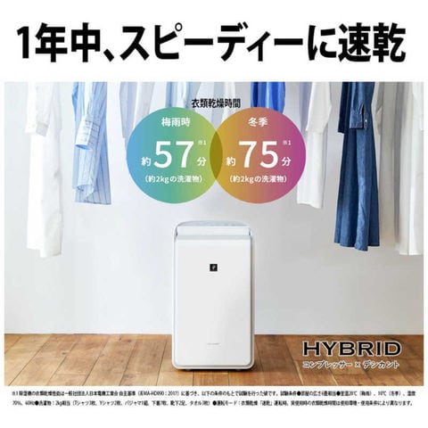 衣類乾燥除湿機 シャープ ハイブリッド式 (木造16畳まで /鉄筋33畳まで) CV-SH150-W ホワイト