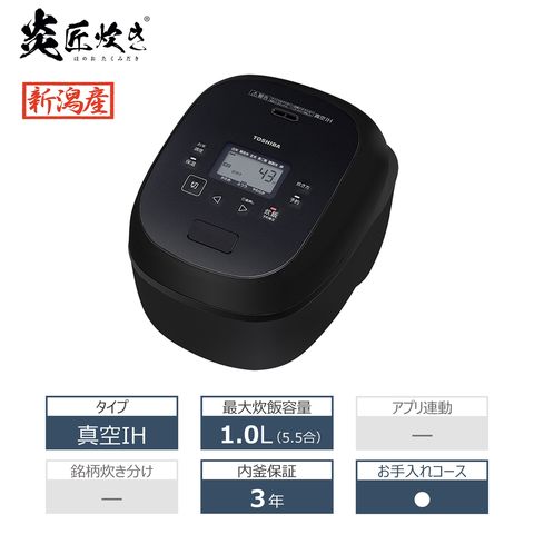 炊飯器 東芝 炎匠炊き 真空IH炊飯器 5.5合炊き RC-10RXA-K グランブラック