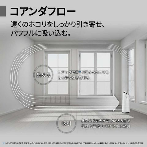 遠くのホコリも素早く吸じんする「コアンダフロー」、花粉や微小な粒子をより多く集める「パワフル吸じん運転」を備える。