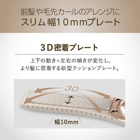 持ち運び便利な手のひらサイズ、充電式コードレスタイプ。水分の蒸発・沸騰を抑えるシルキーモイスト、上下の動き+左右の傾きが変化する3D密着プレート。