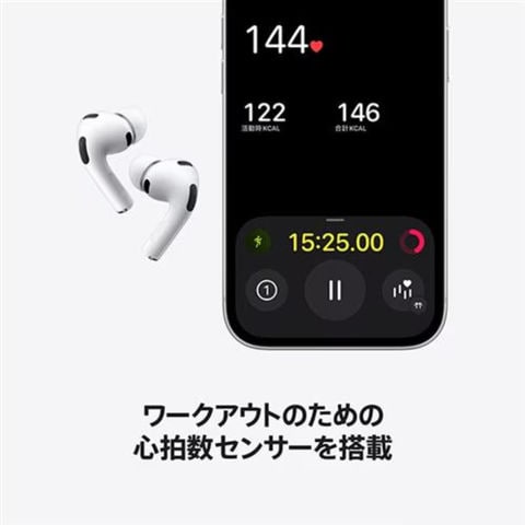 「インイヤーアクティブノイズキャンセリング」を備え、前世代「AirPods Pro 2」と比べて最大2倍の雑音を除去する、完全ワイヤレスイヤホン。 「AirPods Pro 2」より2時間長い最大8時間のバッテリー駆動時間を実現(ANCオン時)。IP57等級の防じん性能と耐汗耐水性能を備えている。 iPhoneのフィットネスアプリに対応し、心拍数の測定やワークアウトの記録ができる。ライブ翻訳により、一部の言語で対面のコミュニケーションが可能。 【スペック】 本体サイズ(H×W×D) mm 【AirPods Pro 3(左右各)】30.9×19.2×27.0mm 【MagSafe充電ケース】47.2×62.2×21.8mm 本体重量 【AirPods Pro 3(左右各)】5.55g 【MagSafe充電ケース】重量:43.99g 機能 ワイヤレス(左右分離) タイプ カナル型 ノイズキャンセリング機能 ノイズキャンセリング対応 Bluetooth Bluetooth対応 BluetoothVersion Bluetooth 5.3 充電端子 ワイヤレス充電 音楽再生時間 最大8時間(アクティブノイズキャンセリングを有効にした場合) 最大10時間(外部音取り込みモードでヒアリング補助機能を使用した場合) 急速充電(mm分充電/mm分再生) 5分充電/60分再生 防水・防滴 防滴対応 リモコン・マイク リモコン・マイク対応 付属品 スピーカーを搭載したストラップループ付きMagSafe充電ケース(USB-C)、シリコーン製イヤーチップ(5サイズ:XXS、XS、S、M、L)、マニュアル (※USB-C充電ケーブルは別売り) 仕様1 ■センサー デュアルビームフォーミングマイク 内向きのマイク 肌検出センサー 動きを感知する加速度センサー 音声を感知する加速度センサー ワークアウトのための心拍数センサー タッチコントロール ■チップ Apple H2ヘッドフォンチップ MagSafe充電ケース(USB-C)に搭載されたApple U2チップ ■防塵性能と耐汗耐水性能 防塵性能と耐汗耐水性能(IP57):AirPods Proと充電ケース 仕様2 ■充電ケース MagSafe充電器、Apple Watchの充電器、Qi規格の充電器、USB-Cコネクタに対応 「探す」アプリで使うためのスピーカーを搭載 (※「探す」機能を利用するにはiOS 18以降が必要です) ■通信機能 Bluetooth 5.3ワイヤレステクノロジー ーーーーーーーー 【Apple製品をご注文のお客様へ】必ずご確認ください。 当ショップにてアップル製品をご購入されます際は、下記の点にご同意いただいたものといたします。 ※当店で取り扱っているApple製品は新品未開封・未使用品です。 ※メーカー保証は当店でのご購入日から1年間有効です。 万が一商品の保証がすでに始まっていた場合、Appleサポート窓口へお電話をお願いいたします。1年保証の開始日をご購入日に変更が可能でございます。 ※販売店では手続きを行う事が出来かねる為、ご本人様からのご依頼(もしくはご本人様の情報が全てお分かりになるご家族の方)にてお手続き頂ますようお願い申し上げます。 ※Apple製品につきましては、初期不良含め全てAppleサポートにて承っております。不具合が発生した場合は、メーカー対応のみとさせていただきますので予めご了承下さいますようお願い申し上げます。 ーーーーーーーー