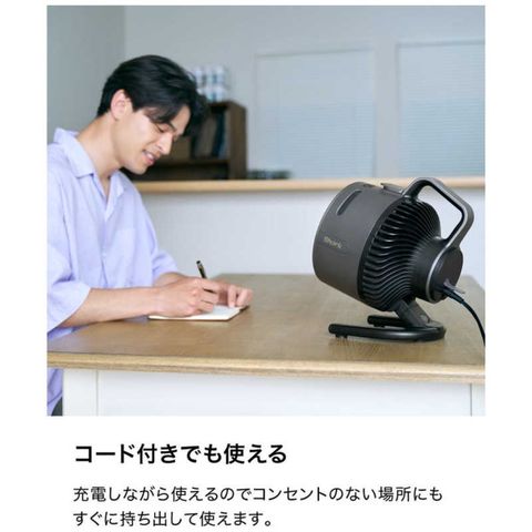 コードレスで使う場所を選びにくく、屋内外で活躍するサーキュレーター。