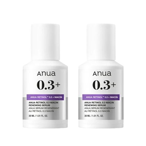 ANUA レチノール0.3 ナイアシンセラム 30ml×2個セット/美容液(セラム)/レチノール0.3%配合でハリ・毛穴・小じわケア/ナイアシンアミド配合で透明感・トーンケア/リポソーム技術で角質層まで浸透/ペプチド・セラミド配合で肌バリアサポート/CICA等整肌成分配合で低刺激設計/軽いテクスチャーでべたつきにくい/使用方法:化粧水後に適量をなじませる(夜使用推奨・日中はUVケア必須)/原産国:韓国