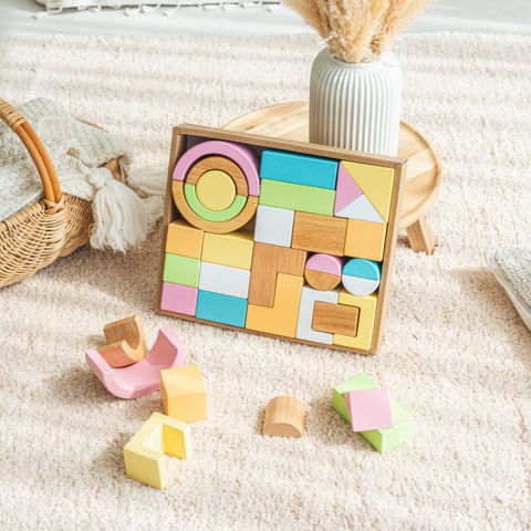 【商品内容】積み木×28、蓋つきクラフトボックス×1、お片付けシート×1