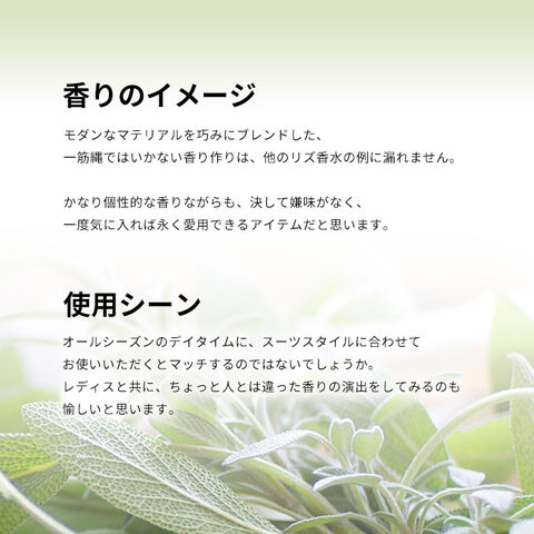 ●香料成分の特性上、時間の経過や季節によって澱(オリ)が見られる場合があります。●乳幼児の手の届かないところに保管してください。