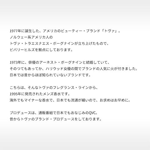 こちらは、そんなトヴァのフレグランス・ラインから、1995年に発売されたメンズ香水です。