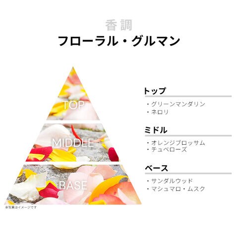 グリーン・マンダリンやネロリなどが、シアーでフレッシュなシトラス・フローラルを香り立たせるトップから、