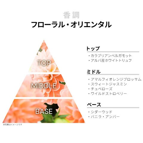 カラブリアン・ベルガモットやアルバ産ホワイト・トリュフなどが、スマートでファッショナブルなモダン・シトラスを香り立たせるトップから、
