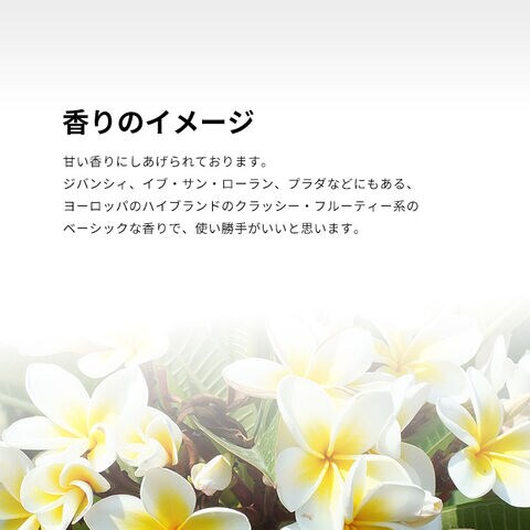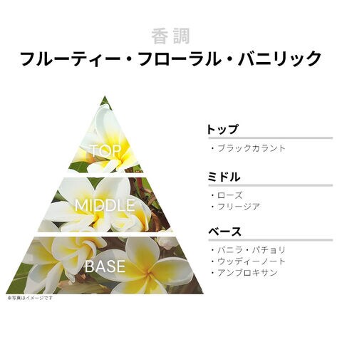 香りはオリジナルとおなじレシピのフルーティー・フローラル・バニリックの香調がベース。甘い香りにしあげられております。