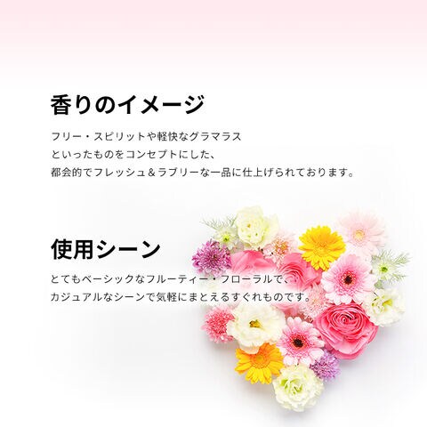 プロデュースは、ハルストンやルル・ギネス、テイラー・スウィフトなどの香水ラインも手がけている名門エリザベス・アーデンです。とてもベーシックなフルーティー・フローラルで、カジュアルなシーンで気軽にまとえるすぐれものです。