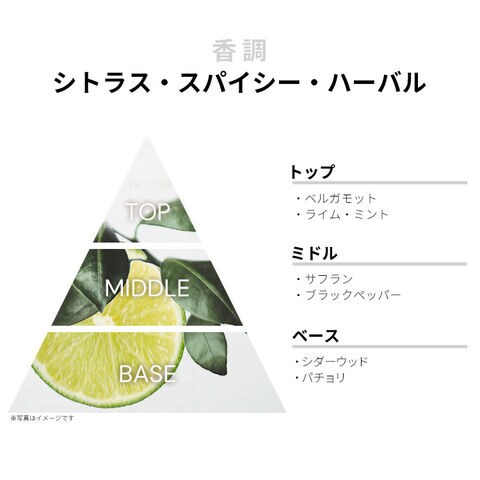 ベルガモット、ライム、ミントなどが、スポーティーなシトラス・ハーバルを香り立たせるトップから、
