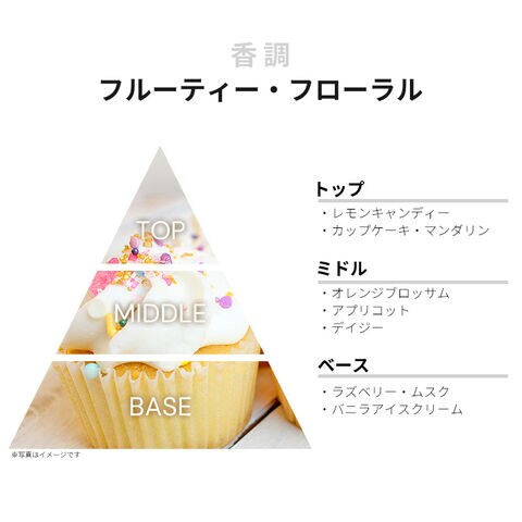 レモン・キャンディー、カップ・ケーキ、マンダリンなどが、明るくておいしそうなフルーティー・グルマンを香り立たせるトップから、