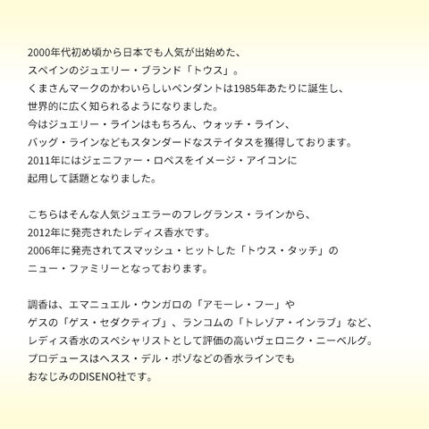 こちらは、そんなトウスのフレグランス・ラインから、2018年に発売されたレディス香水です。