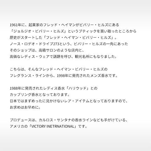 こちらは、そんなフレッド・ヘイマン・ビバリー・ヒルズのフレグランス・ラインから、1998年に発売されたメンズ香水です。