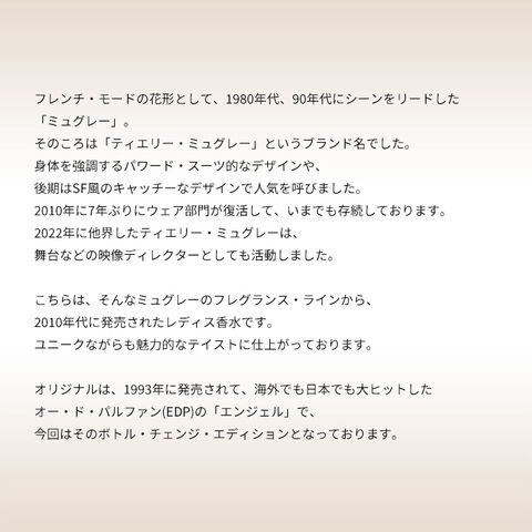 こちらは、そんなミュグレーのフレグランス・ラインから、2010年代に発売されたレディス香水です。