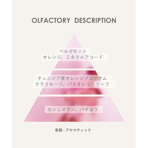 ミドル:チュニジア産オレンジブロッサム、クラリセージ、バイオレットリーフ