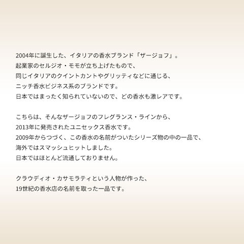 こちらは、そんなザージョフのフレグランス・ラインから、2013年に発売されたユニセックス香水です。