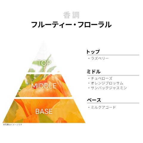 香りはフルーティー・フローラルの香調がベース。ヨーロピアン・ポップなテイストにしあげられております。